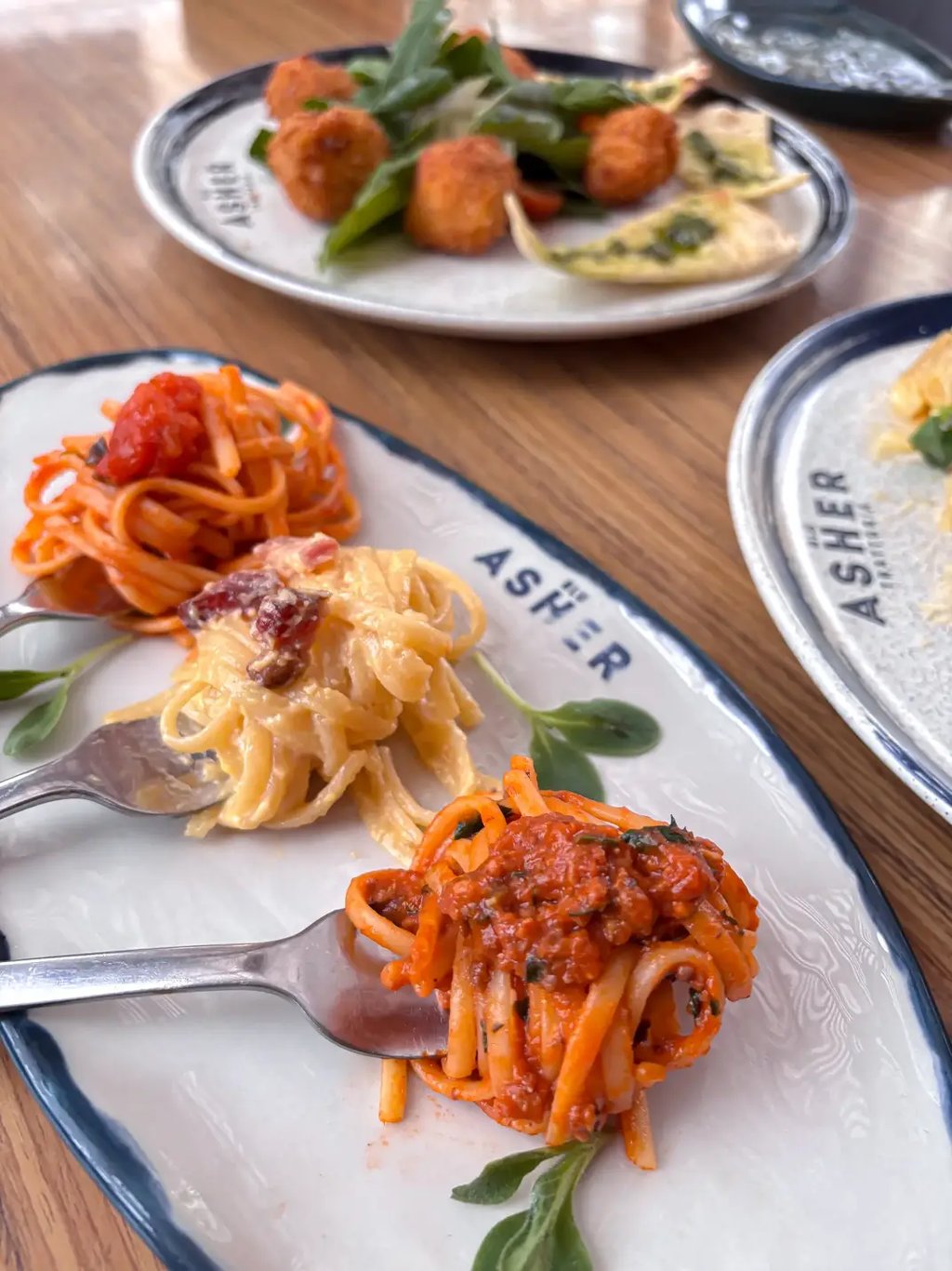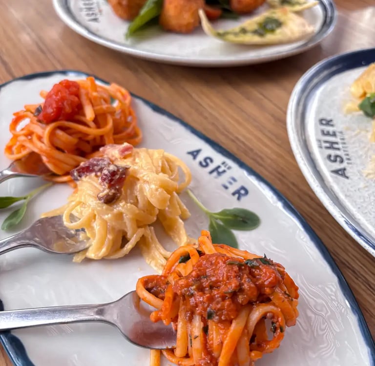 En Blu Asher Trattoria, la pasta no es solo un plato, es una expresión de arte y dedicación. Cada preparación nace del respeto por la tradición italiana, elaborada a mano con ingredientes frescos, harinas seleccionadas y el punto exacto de cocción que resalta su textura y sabor.
