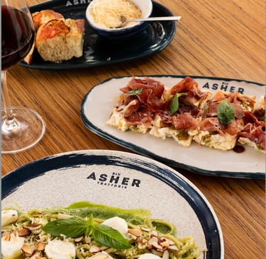 En este restaurante de pastas italiano, cada receta nace del respeto por la tradición y la pasión por sorprender a cada visitante. Más allá de su menú, Blu Asher Trattoria ofrece servicios de Catering, Catas, y Eventos Corporativos con el mismo nivel de excelencia que caracteriza su cocina.