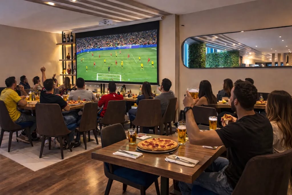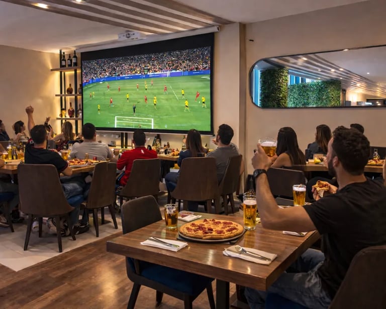 Un ambiente social donde el restaurante se transforma en un sport bar durante el partido.