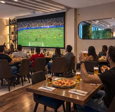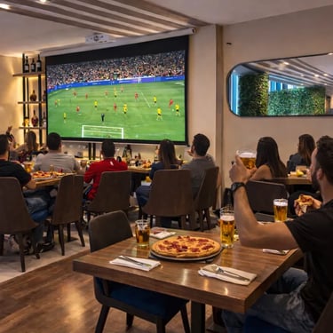 En sectores dinámicos de Bogotá como Calle 85 o cerca del Parque El Virrey, este tipo de planes se han vuelto muy populares entre grupos de amigos que buscan ver partidos importantes mientras disfrutan buena comida. Un buen restaurante para ver partidos de futbol logra que el partido sea el centro de la experiencia, pero sin dejar de lado la gastronomía. Allí el fútbol se mezcla con pizza, cerveza fría, cocteles y comida italiana, creando un ambiente perfecto para compartir.